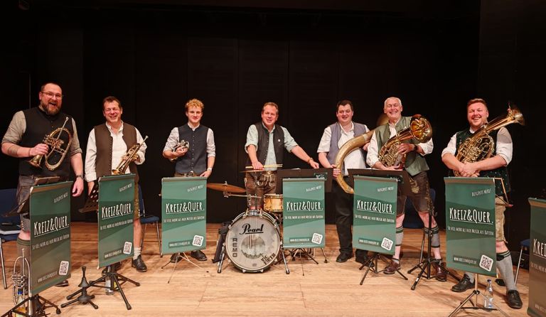 Hier verschmelzen Tradition und Moderne – mit 3 Trompeten/Flügelhörnern, 3 Basstrompeten/Posaunen und einer Tuba bringen wir die Highlights der bayrisch-böhmisch-mährischen Musik auf die Bühne. Und weil’s nicht bei Polka und Walzer bleiben muss, servieren wir auch Schmankerl von Rammstein, ABBA, den Backstreet Boys oder Sportfreunde Stiller.